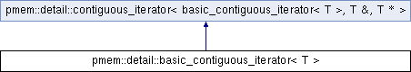 Public Member Functions inherited from pmem::detail::contiguous_iterator< basic_contiguous_iterator< T >, T &, T * > | |