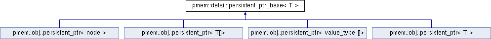 Inheritance diagram for pmem::detail::persistent_ptr_base< T >: